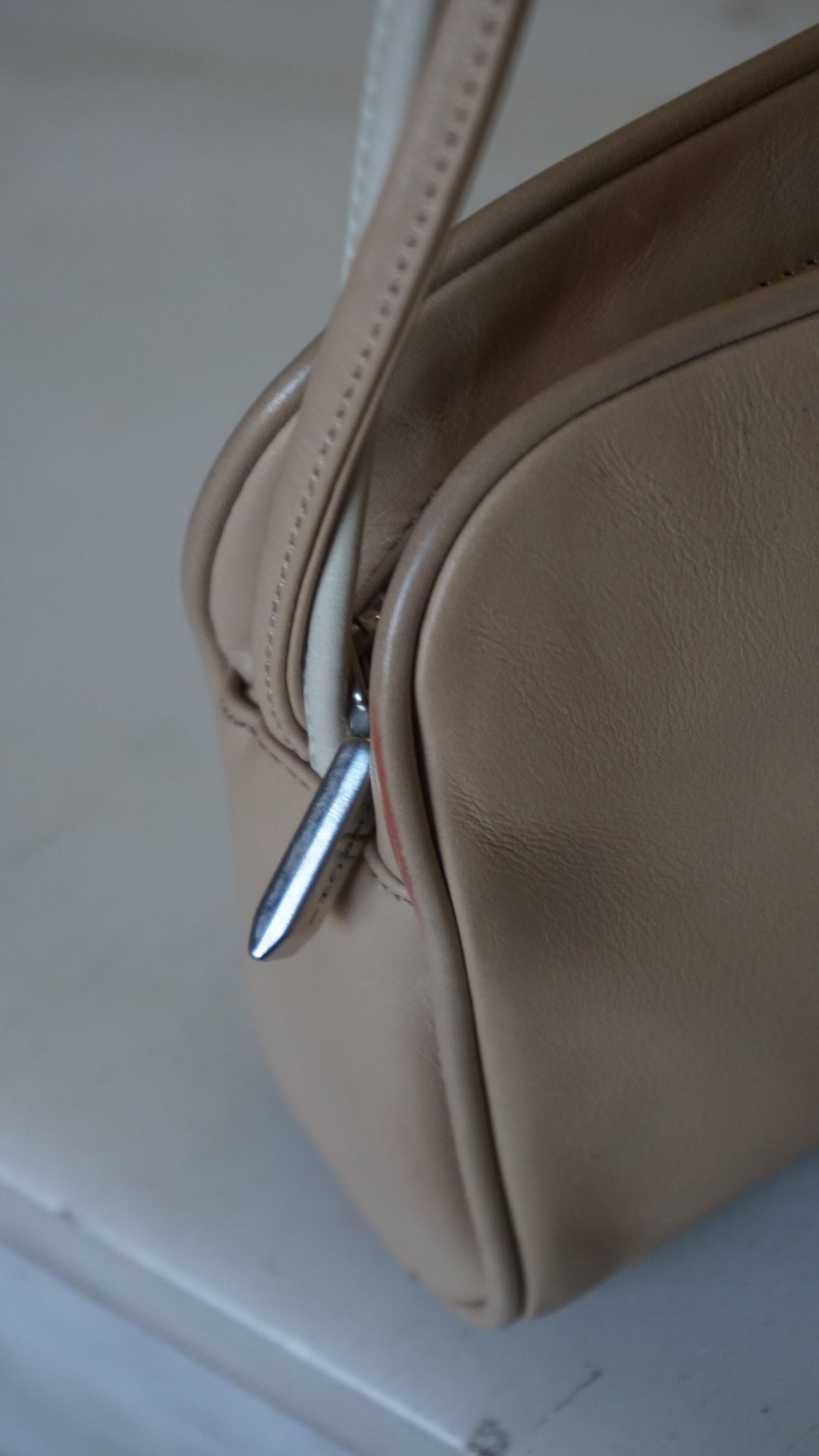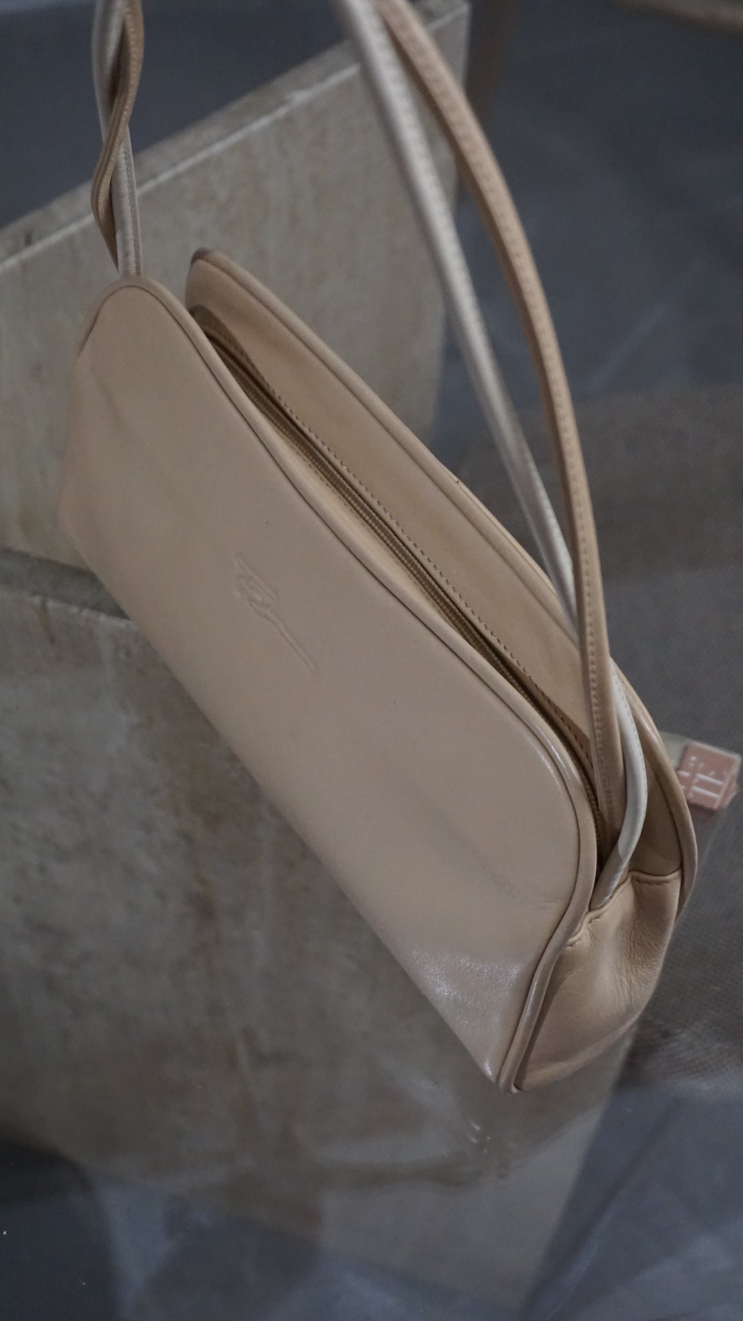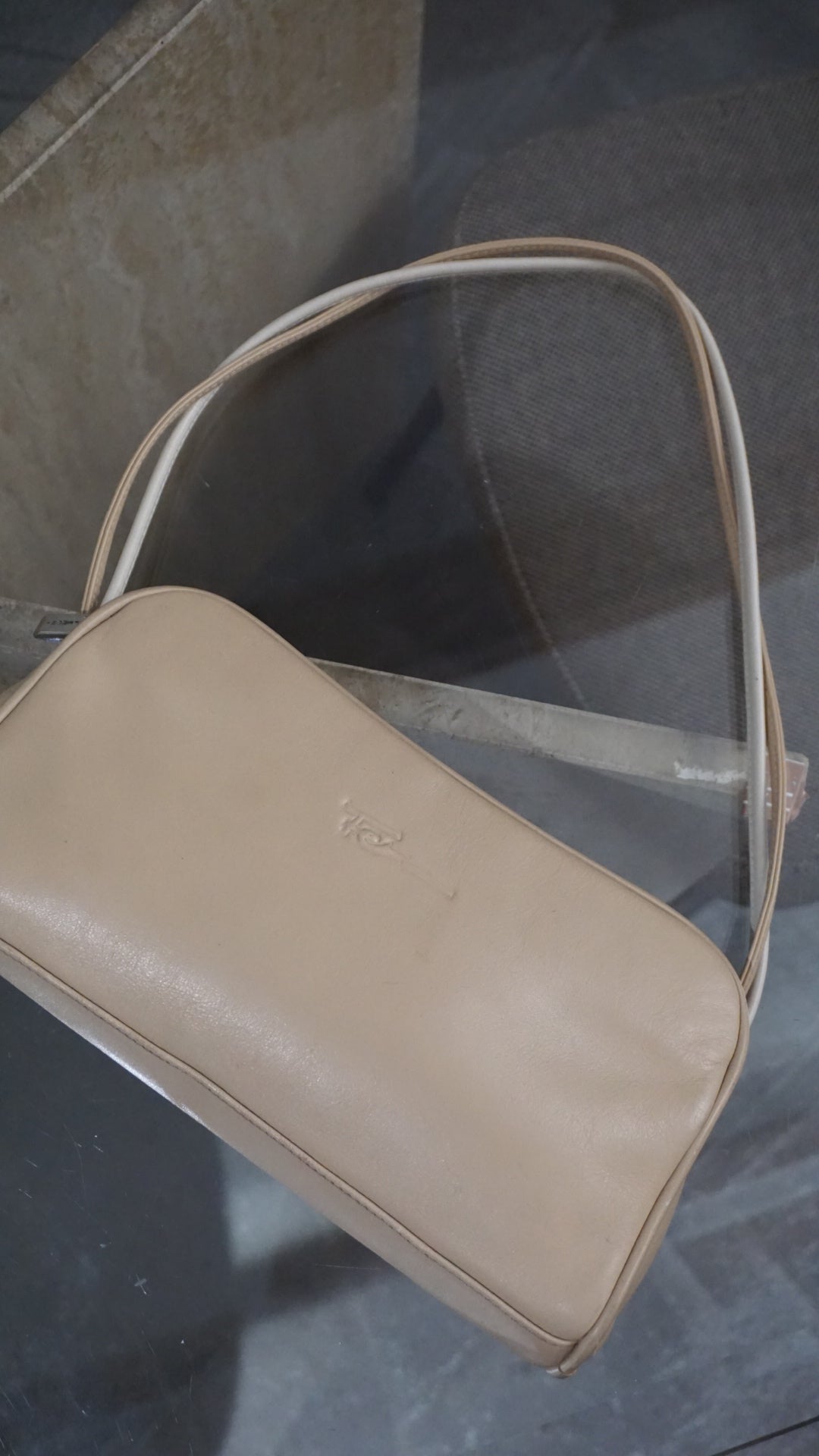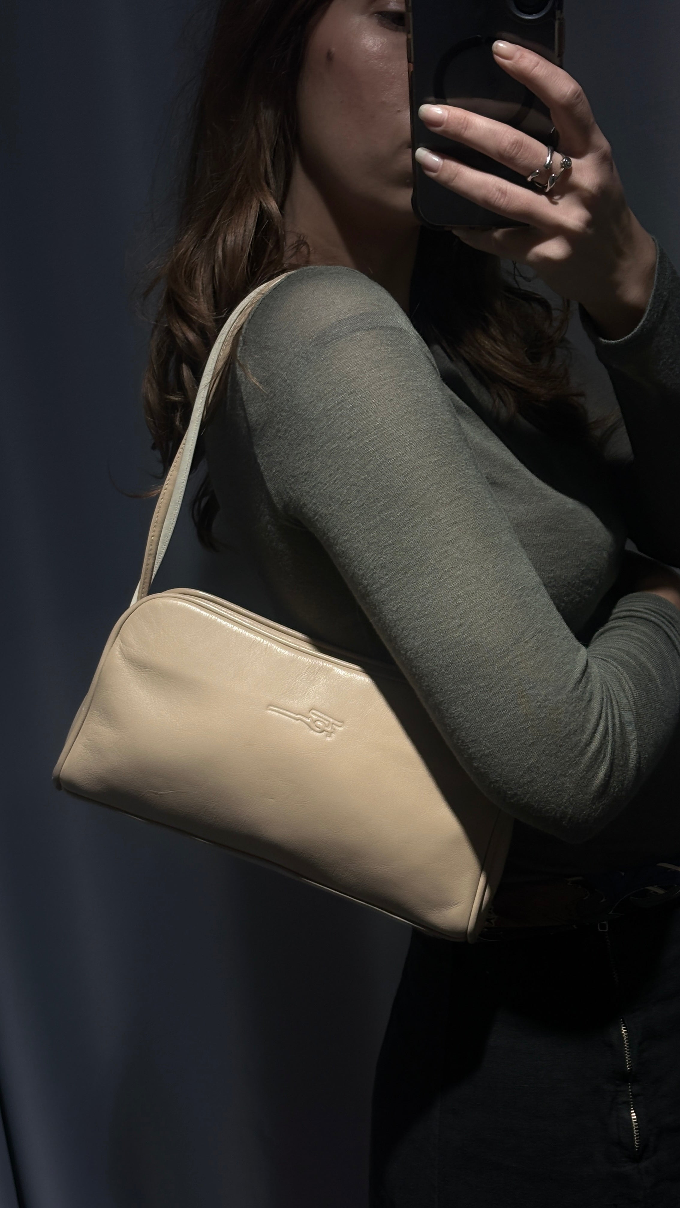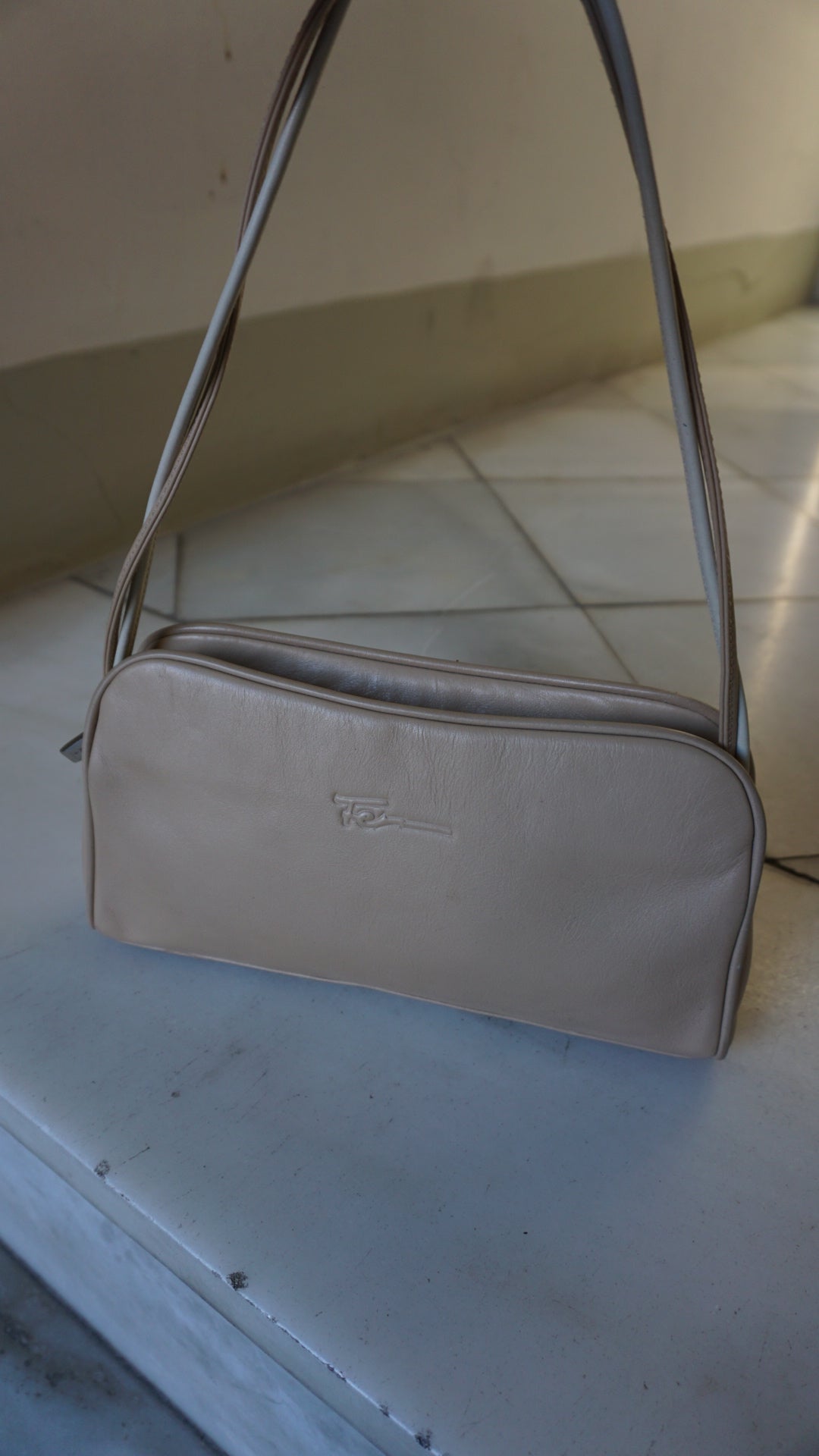A super cute, elegant, and incredibly versatile beige shoulder bag.