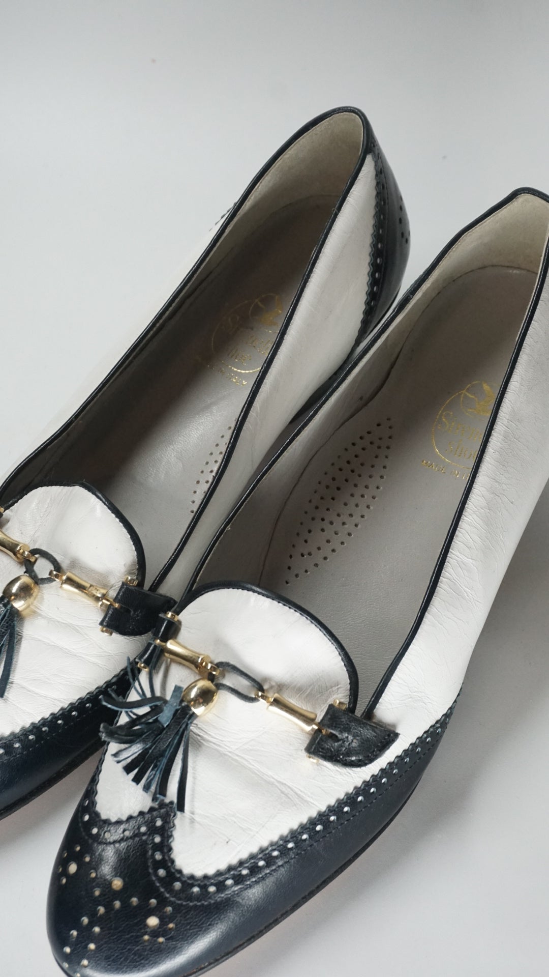 Black & White Shoes with Golden Accent