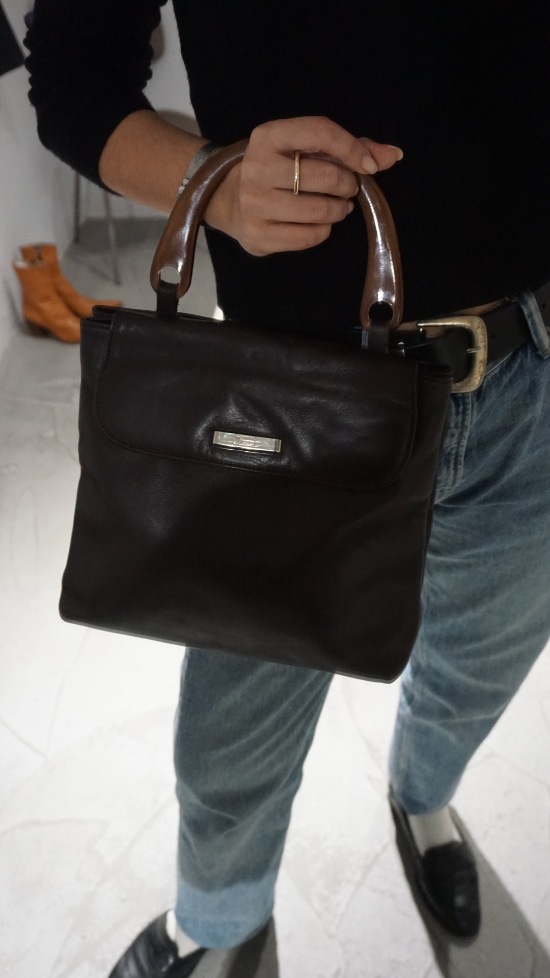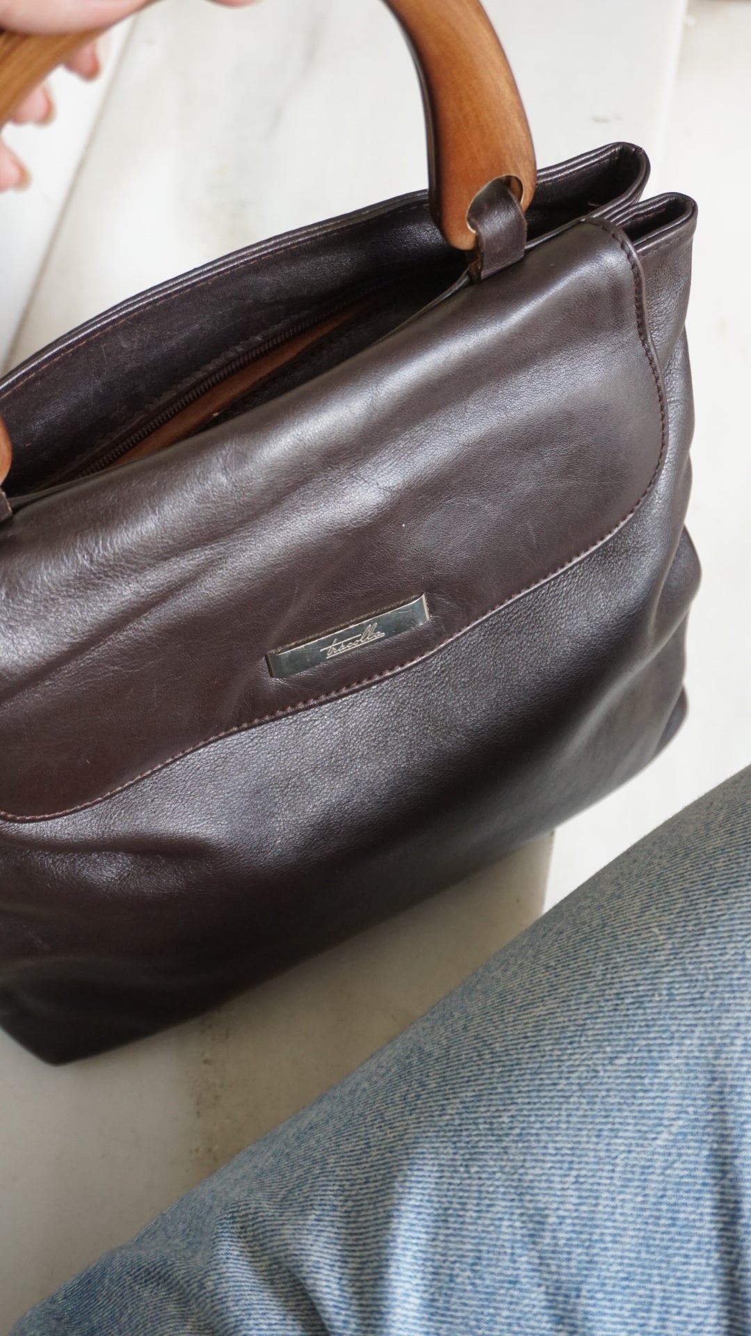 Brown vintage leather handbag