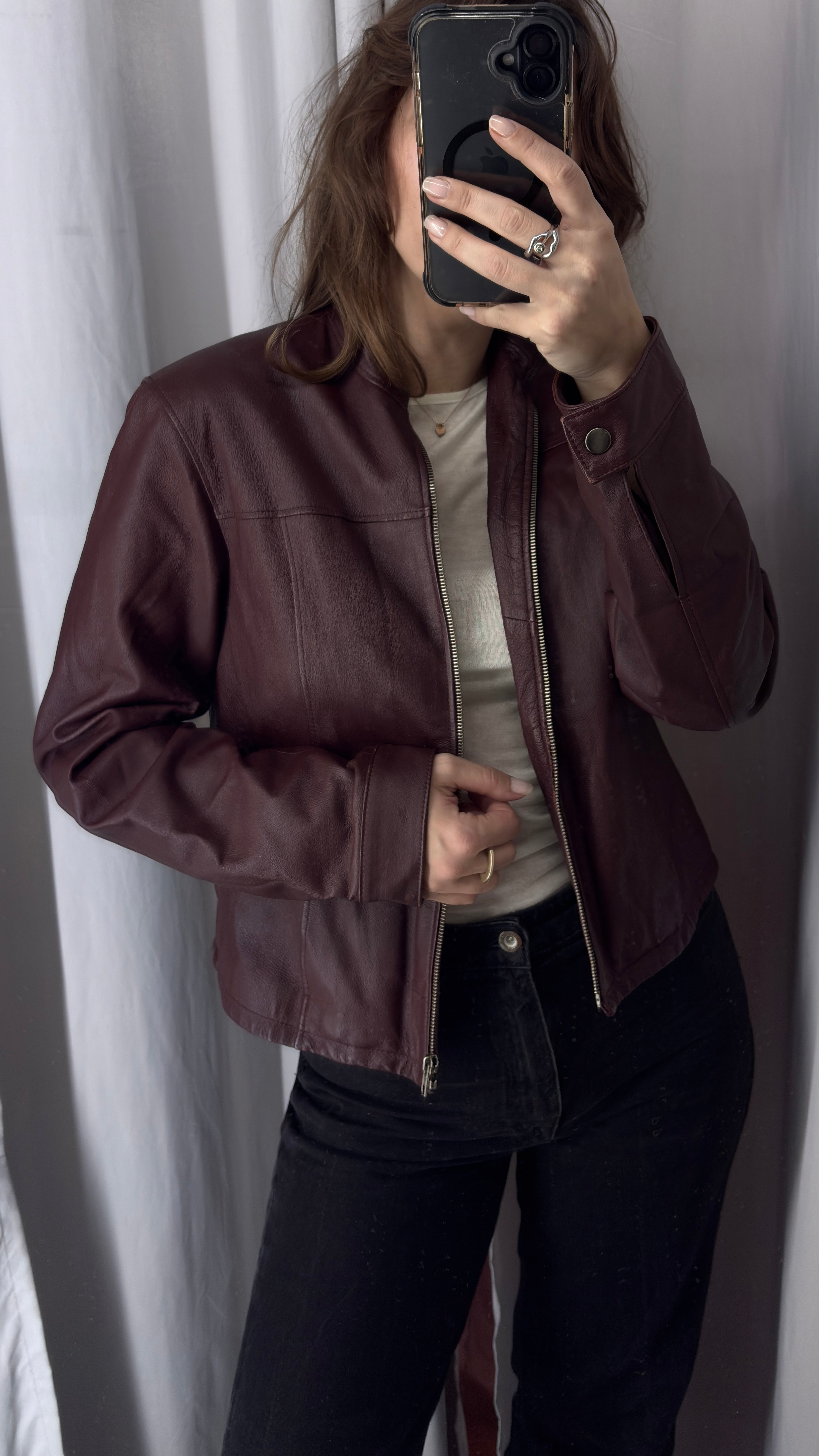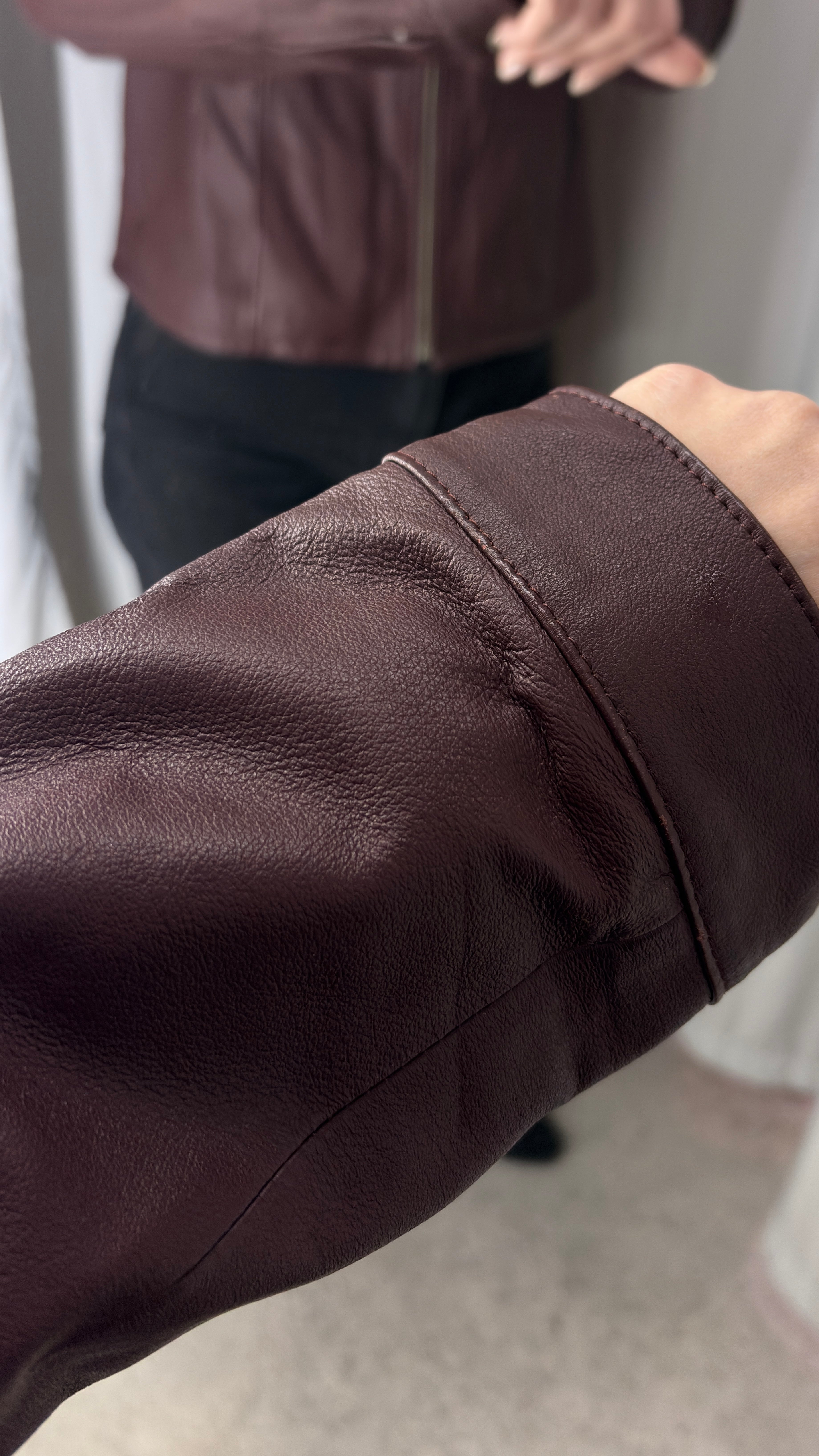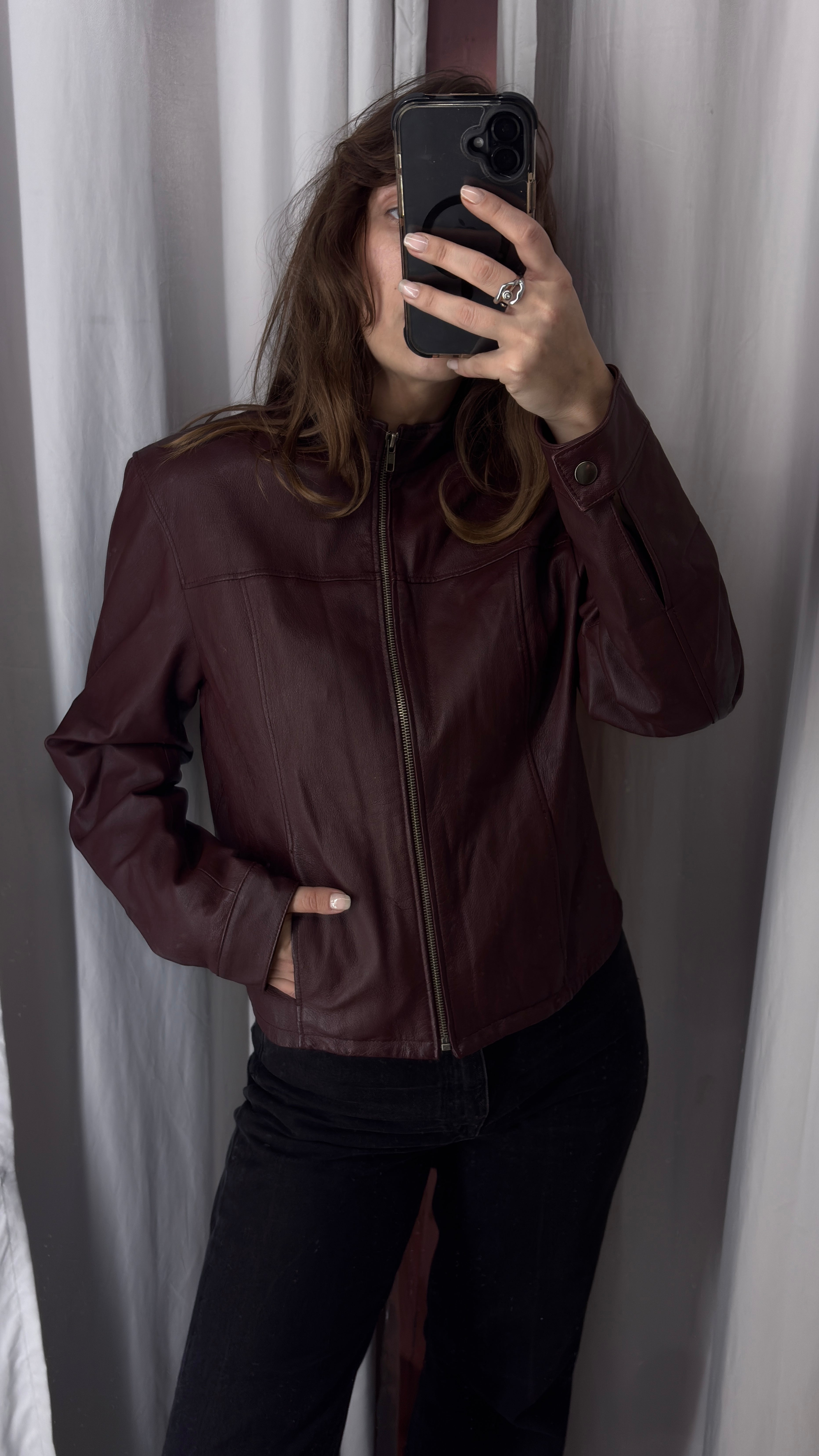 Burgundy leather biker jacket