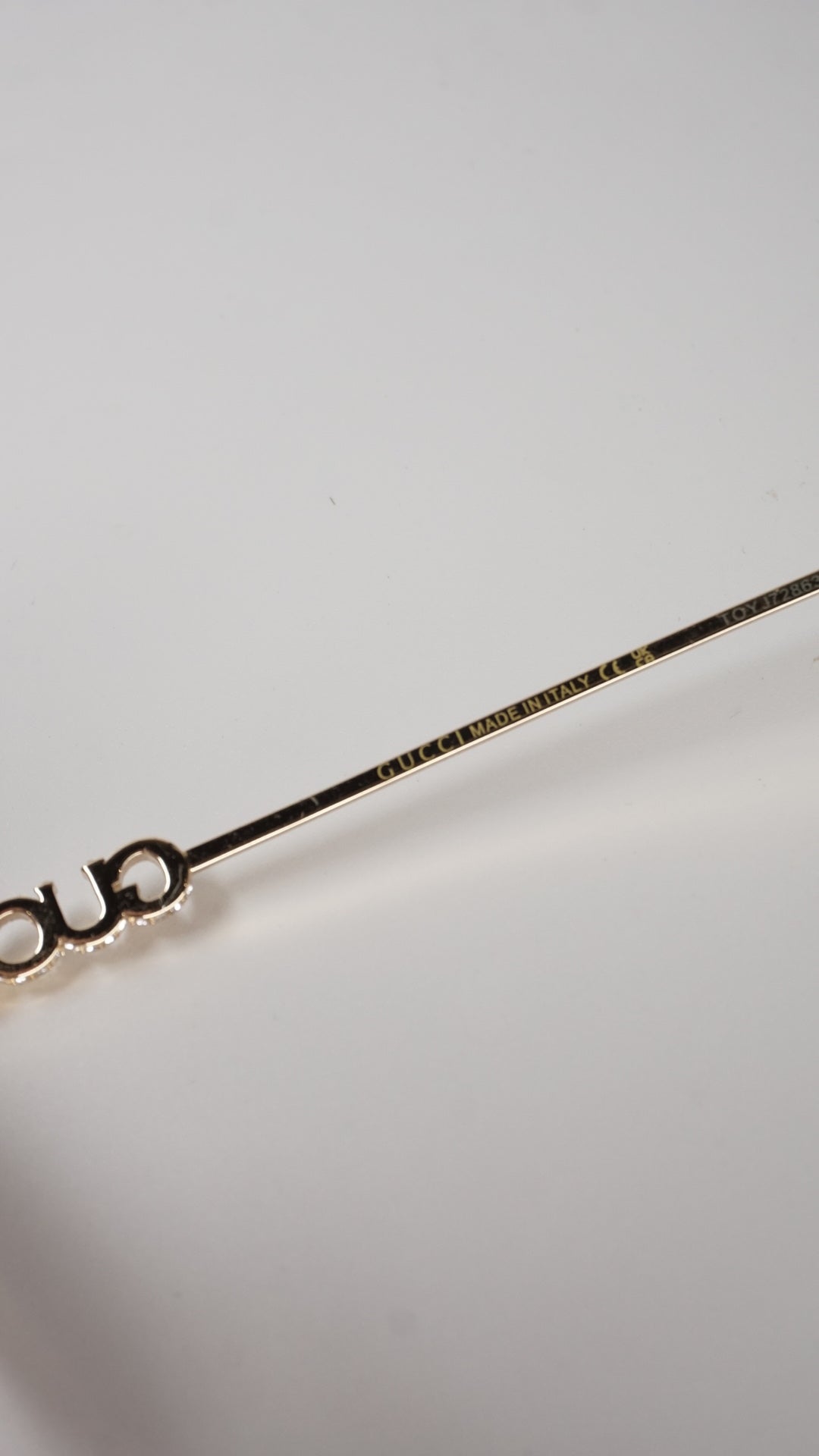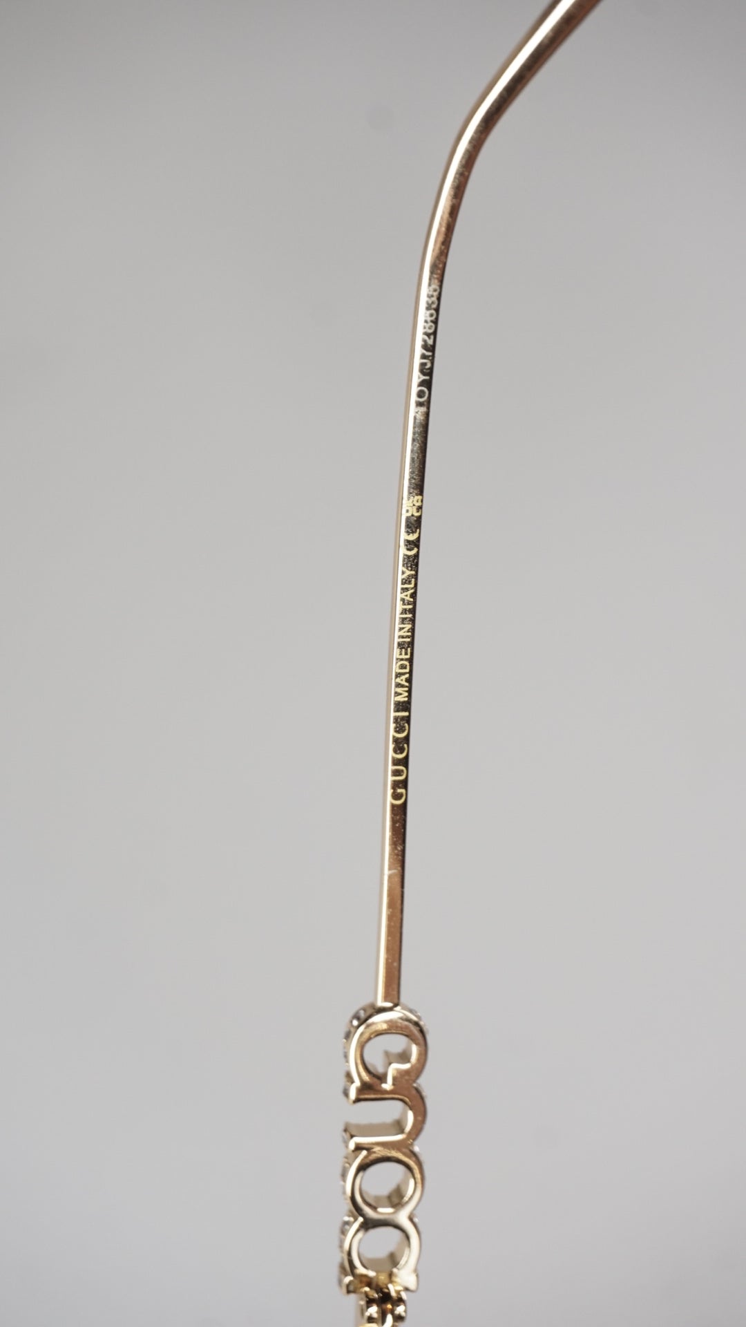 Not your typical metal sunnies. These Gucci GG1802S gold-tone oval sunglasses carry just the right balance of elegance and edge. The slim, graceful oval frame gives a vintage whisper, while the temples feature the signature Gucci cut-out logo to make that luxe statement.