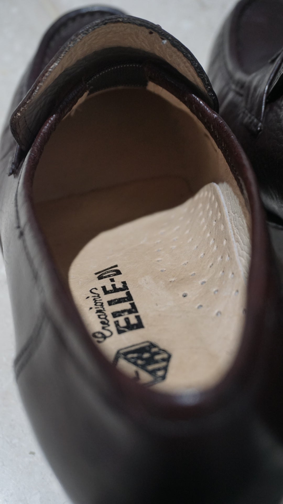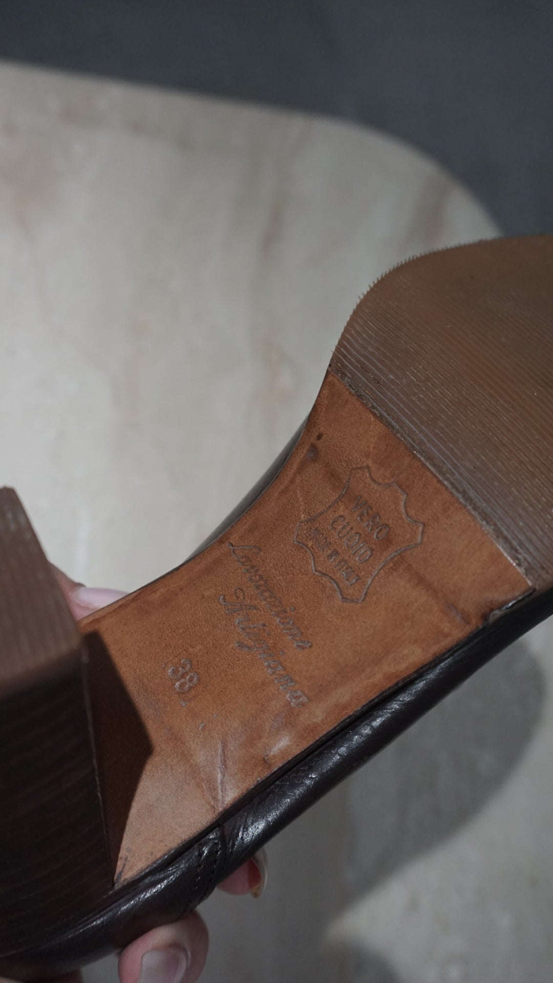 Vintage natural leather loafers in a rich chocolate-brown tone — brand new, never worn (visible on the insole and sole).