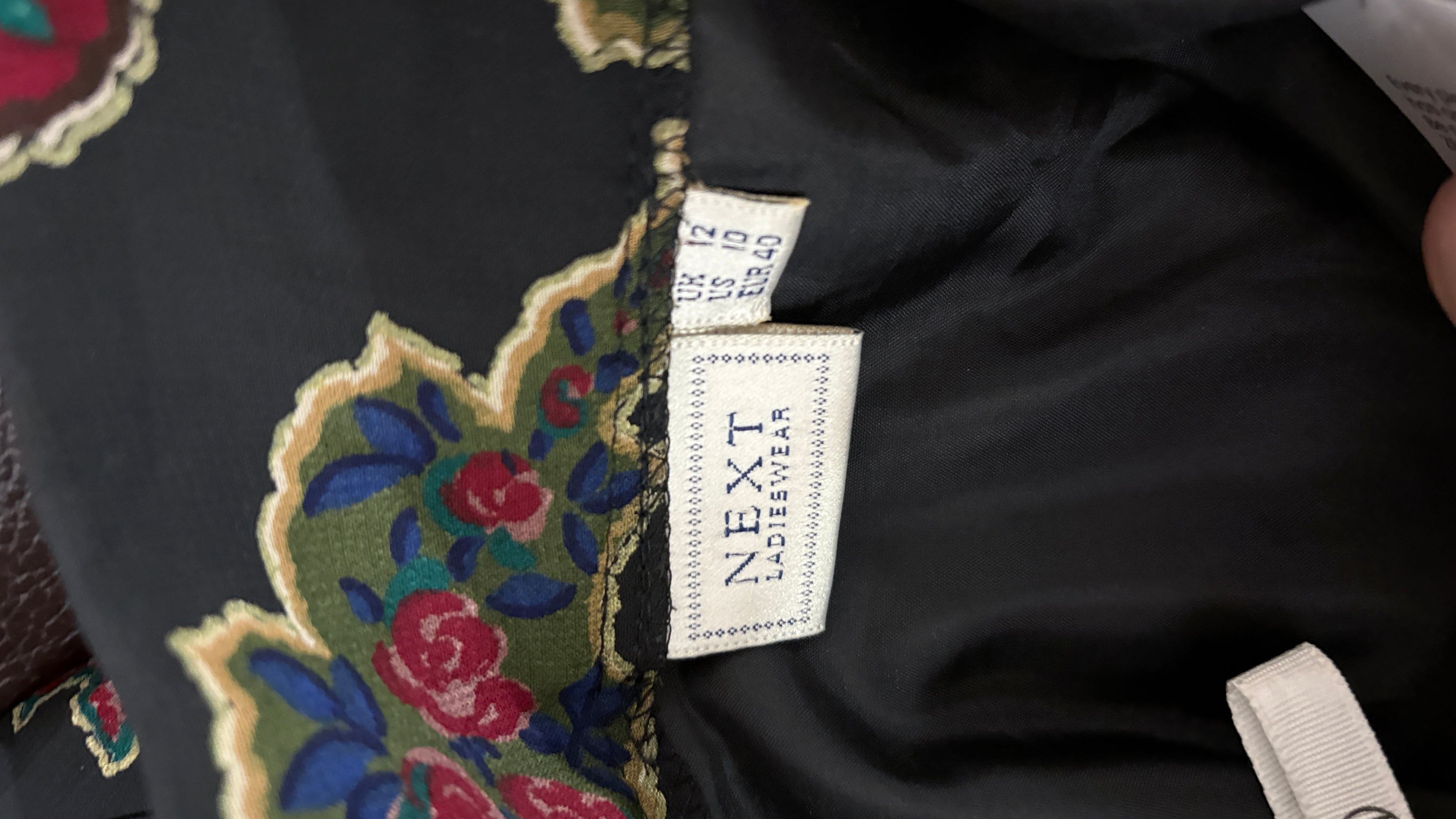Vintage maxi skirt with a multicolored floral print on a dark background, a feminine and timeless piece with plenty of charm. The fabric retains its softness, and the colors stay vibrant.