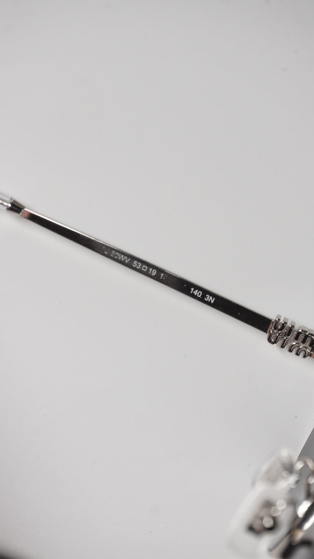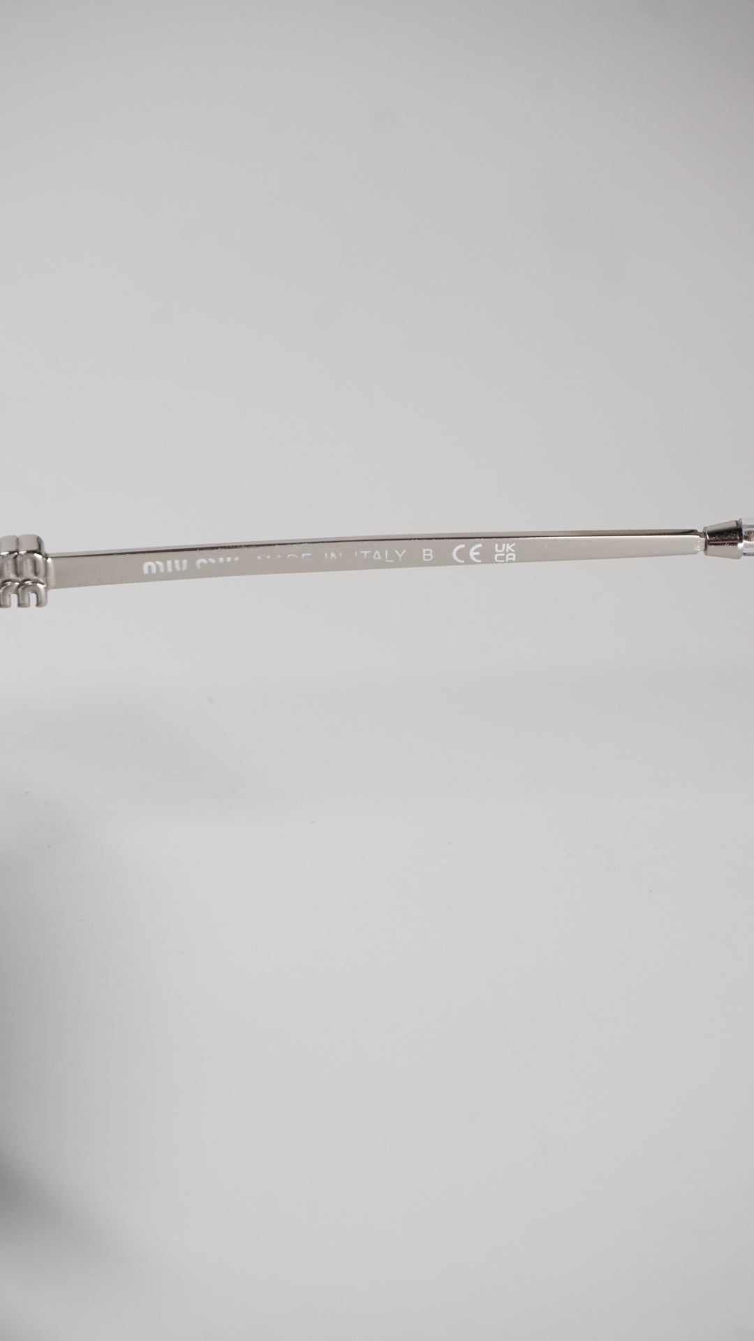 These Miu Miu MU 50WV in polished silver flip the script — usually released as optical glasses, this pair comes fitted with the original Miu Miu dark lenses (non-prescription), making them a rare sunglasses version.