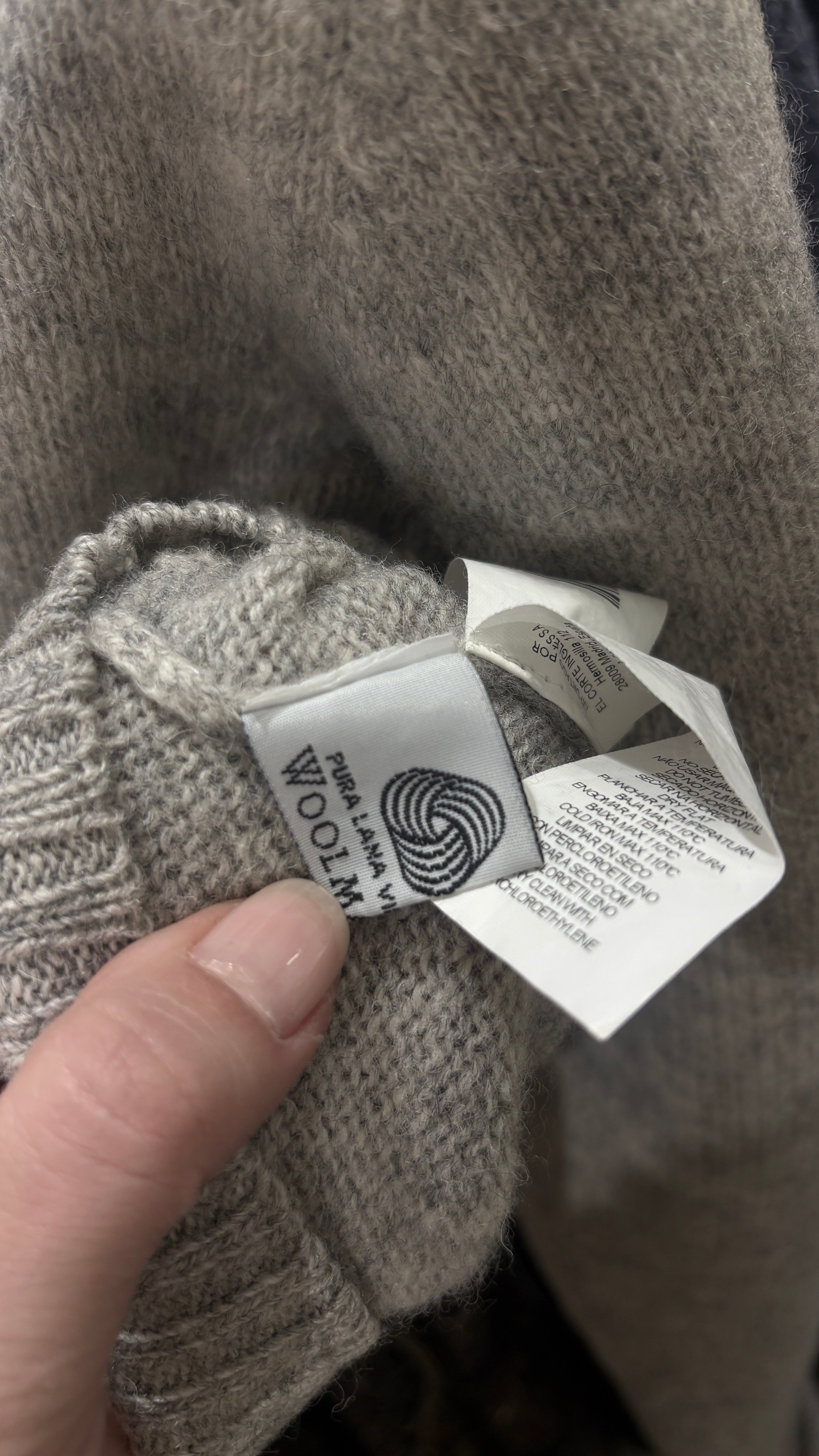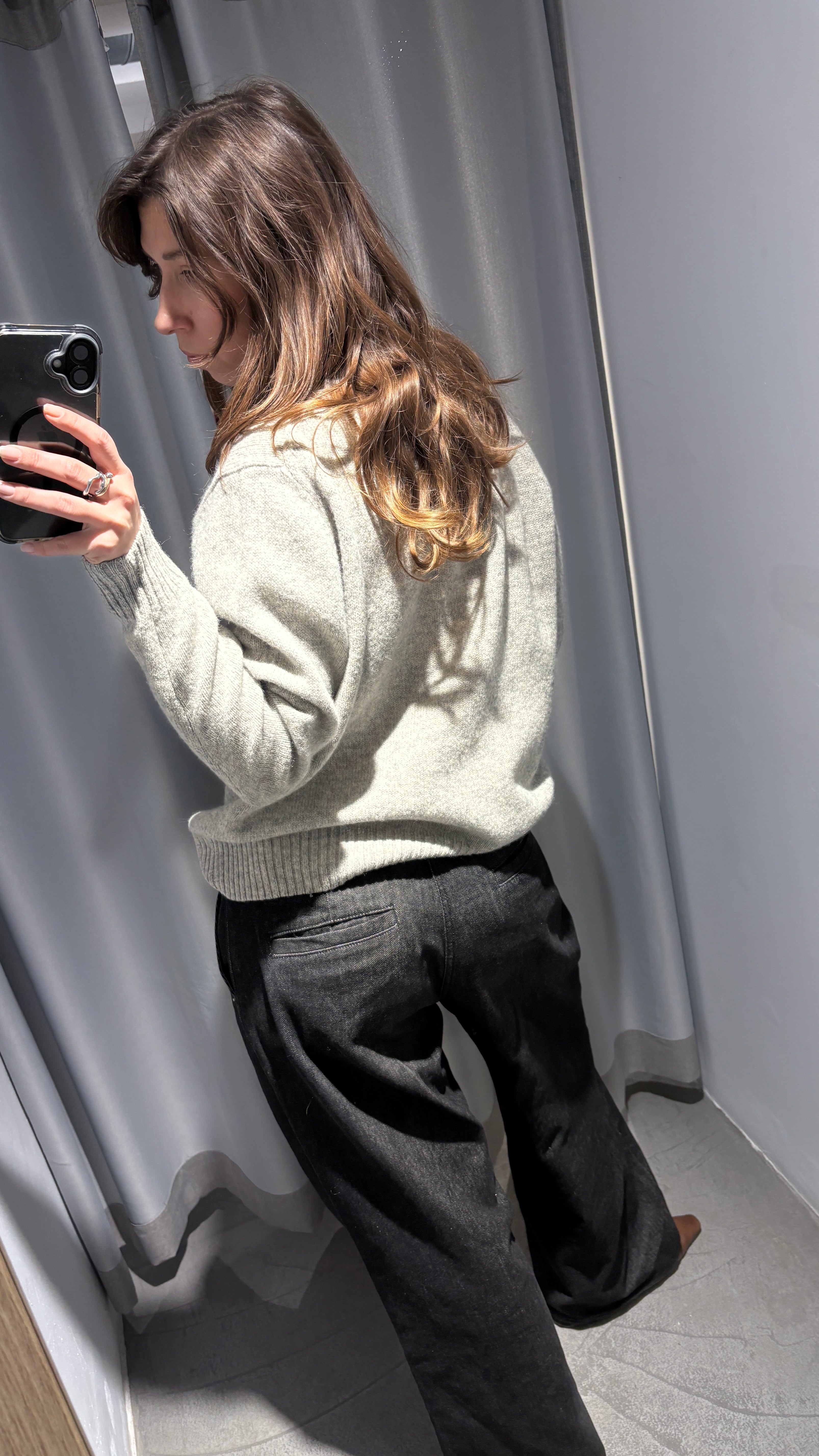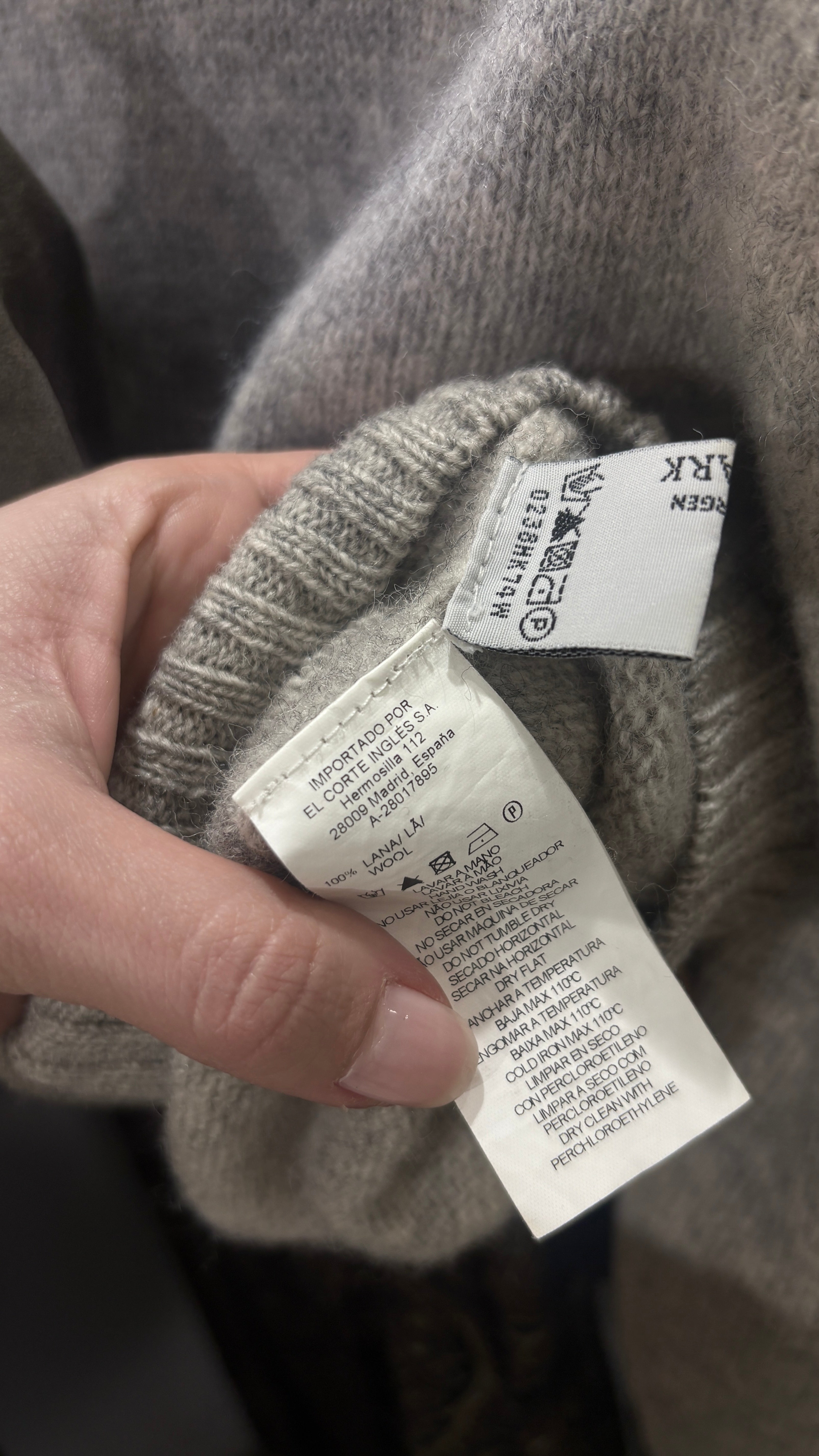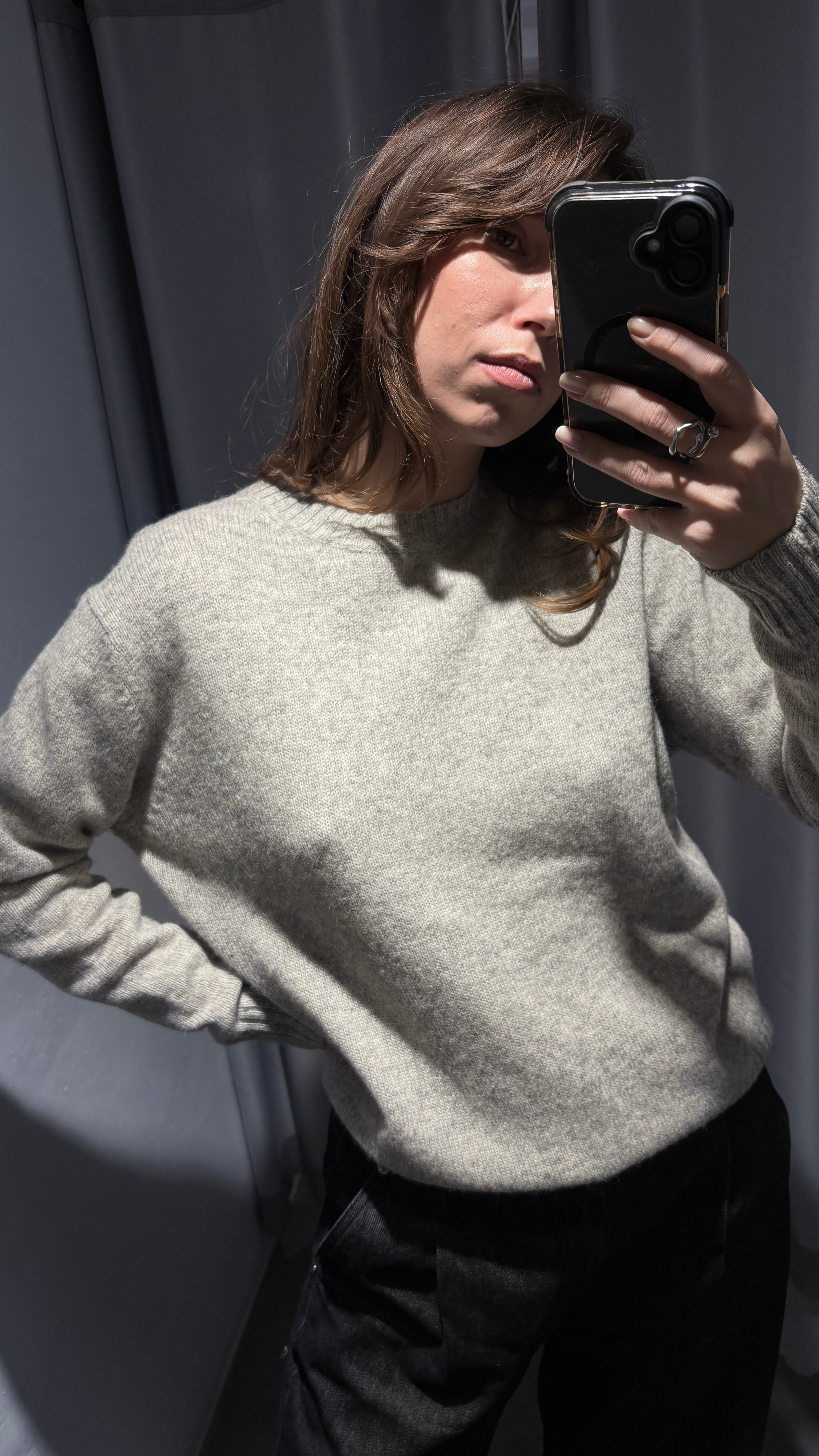Pure wool sweater with WOOLMARK certification in a very light gray, perfect for spring. It barely pills, which is a hallmark of high-quality wool.