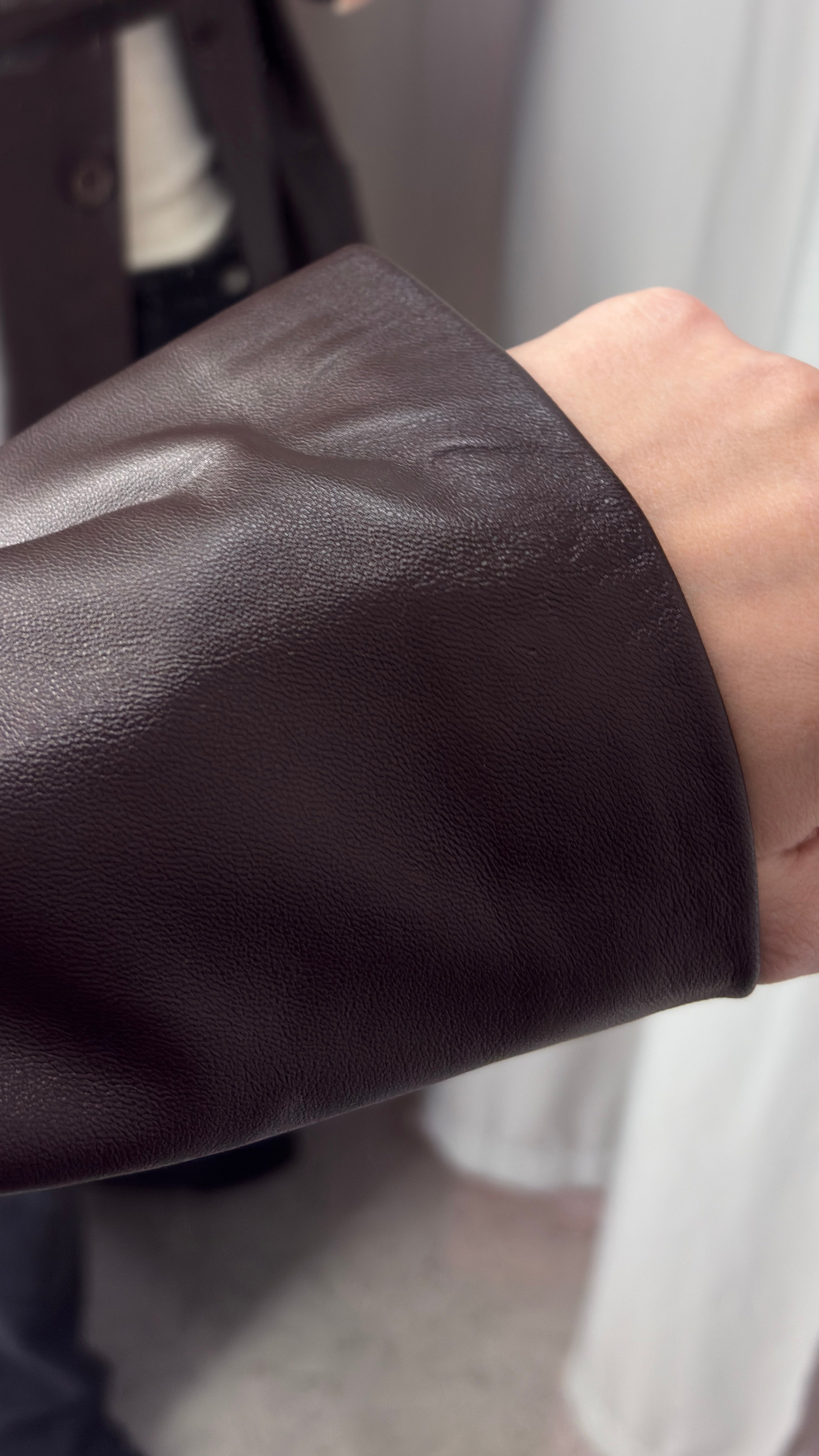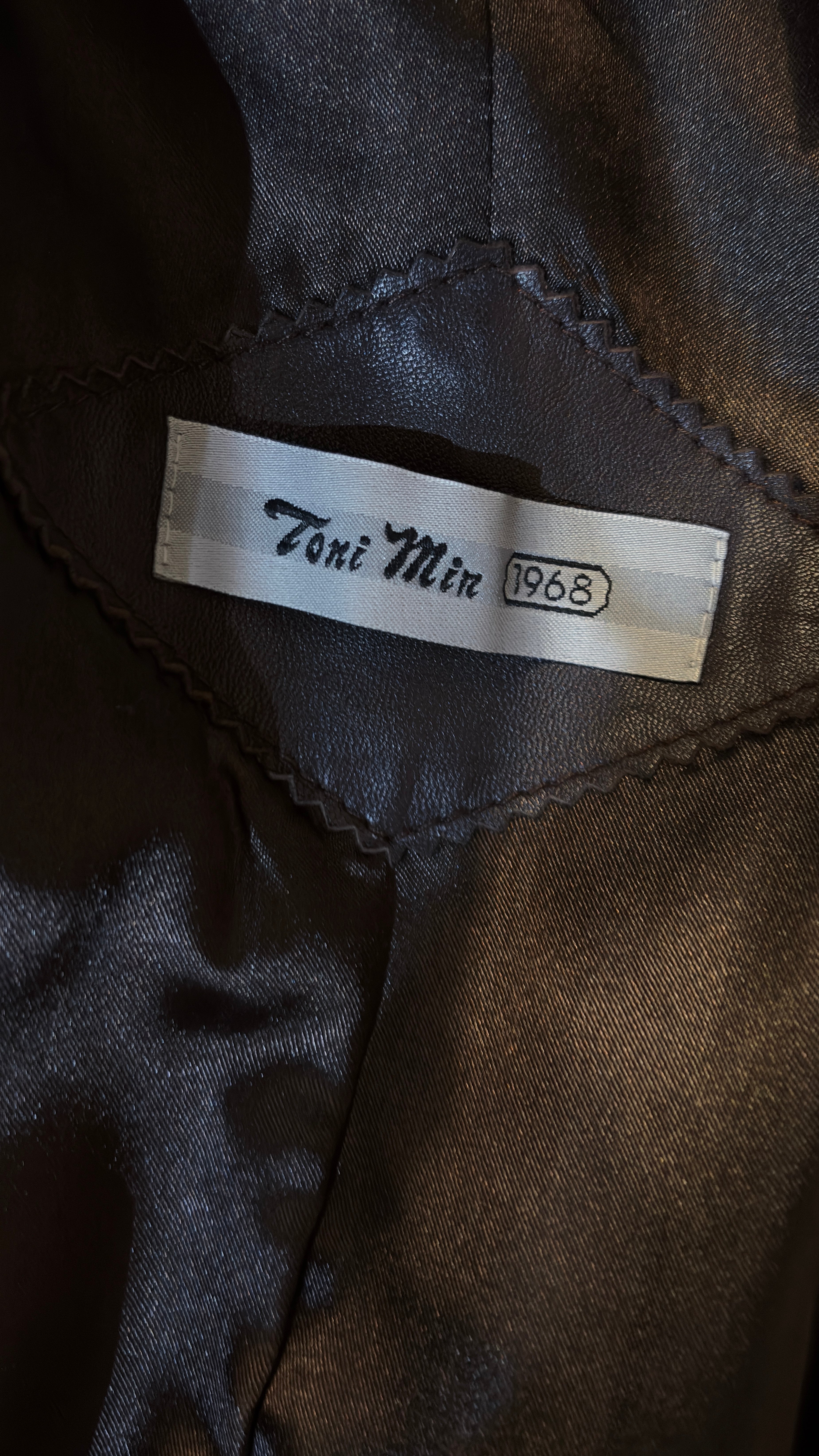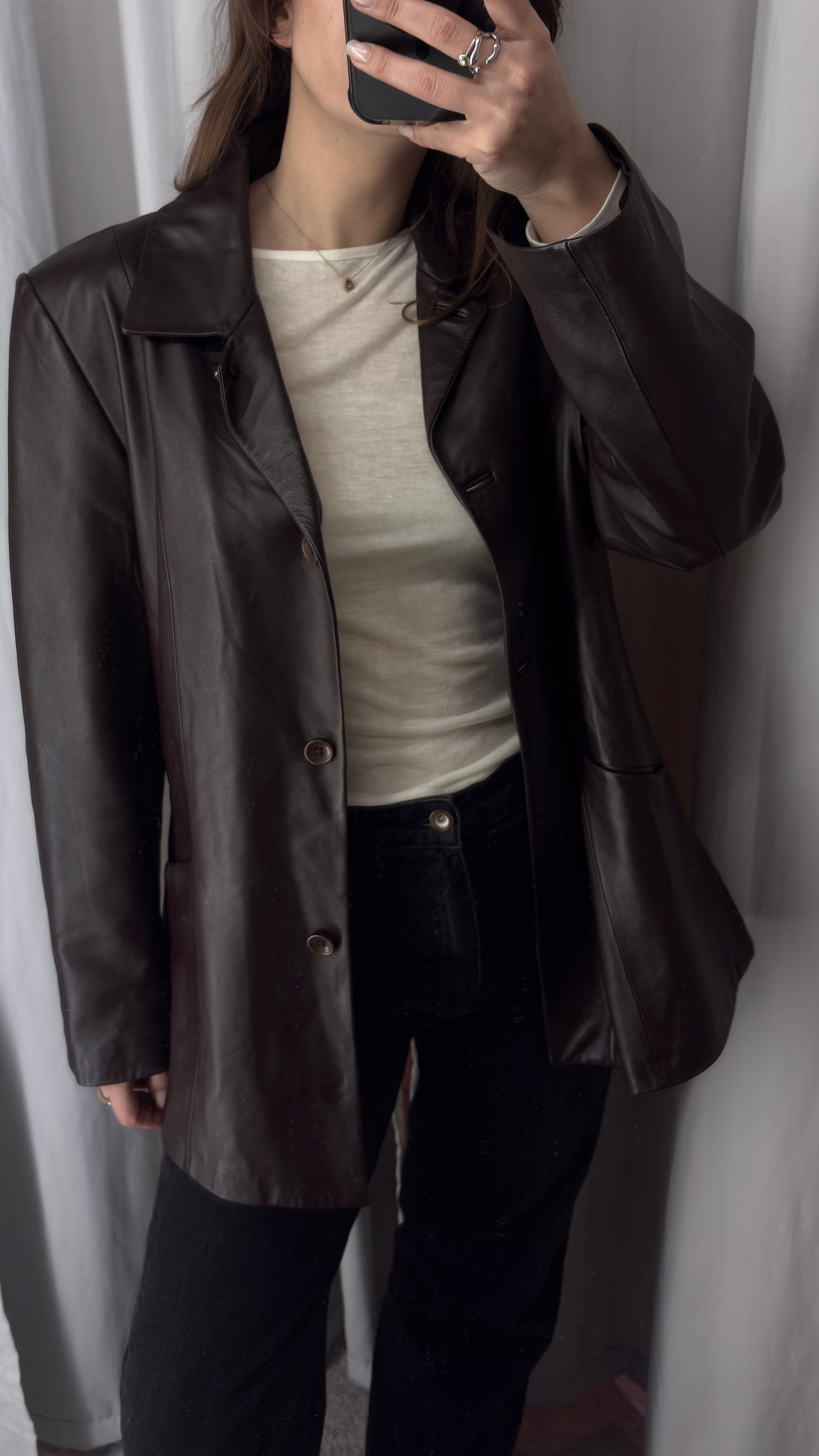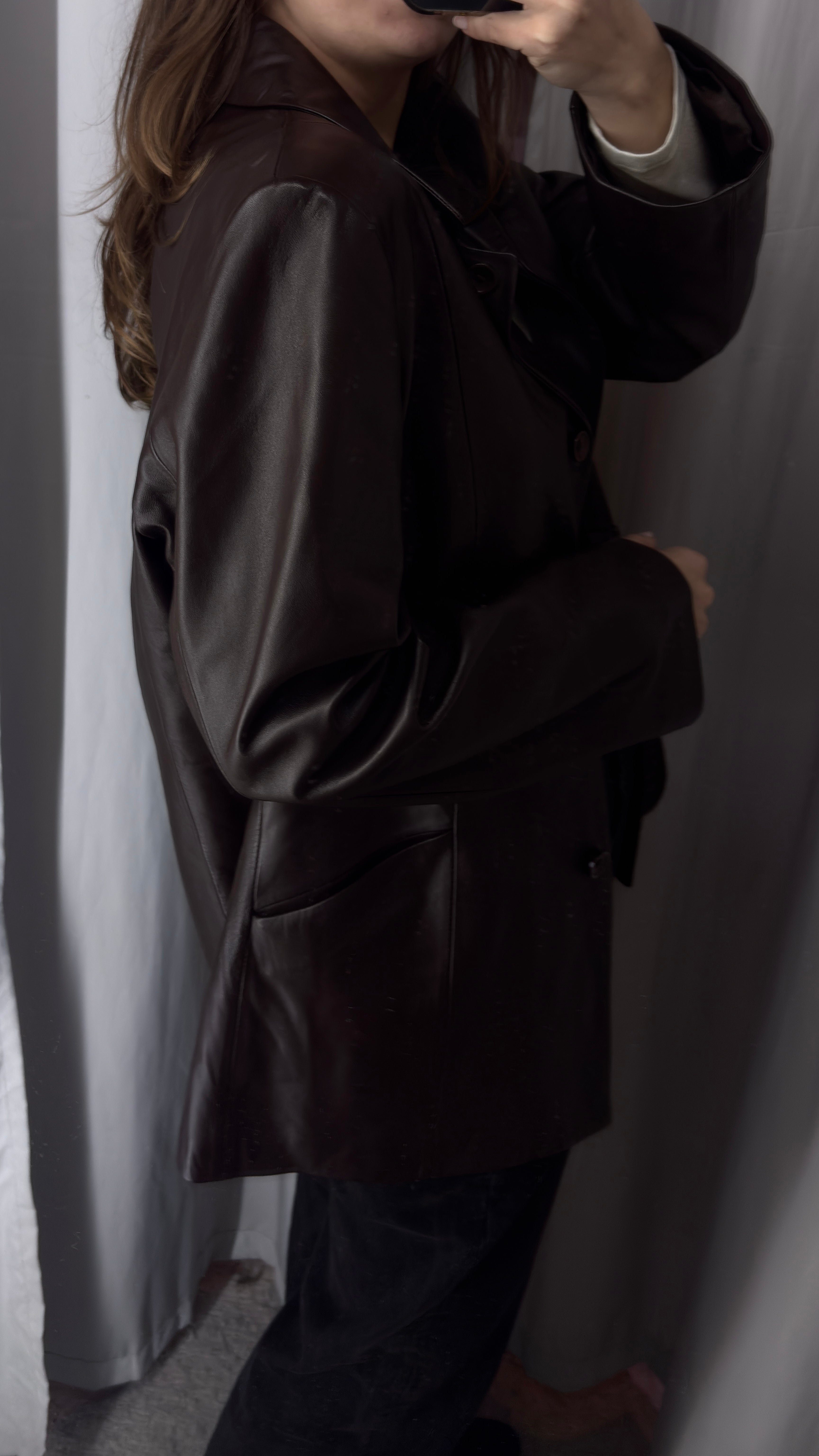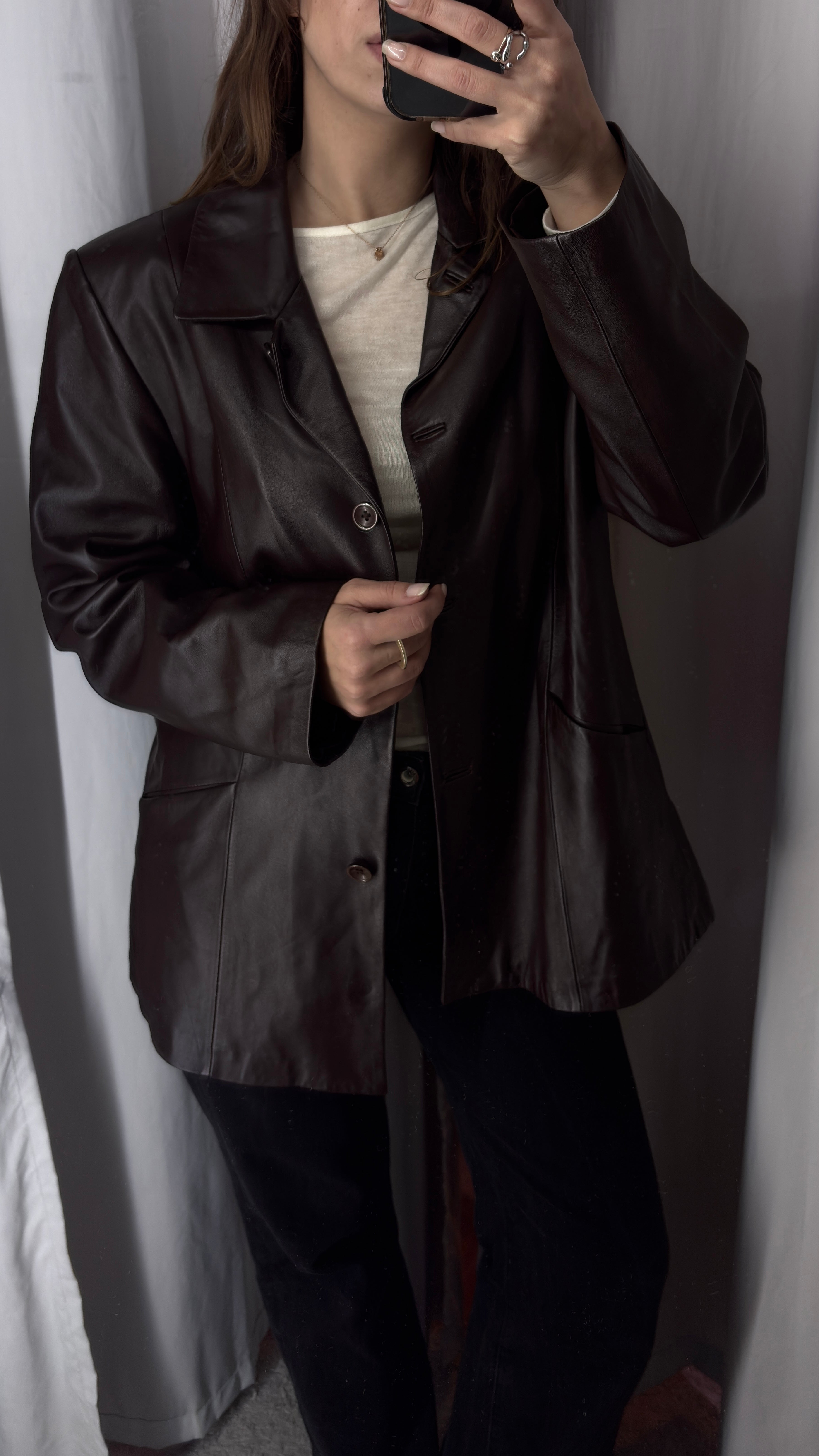 Vintage leather blazer jacket from Toni Mix 1968 in a beautiful chocolate brown/burgundy shade. It has a classic, slightly relaxed blazer cut.