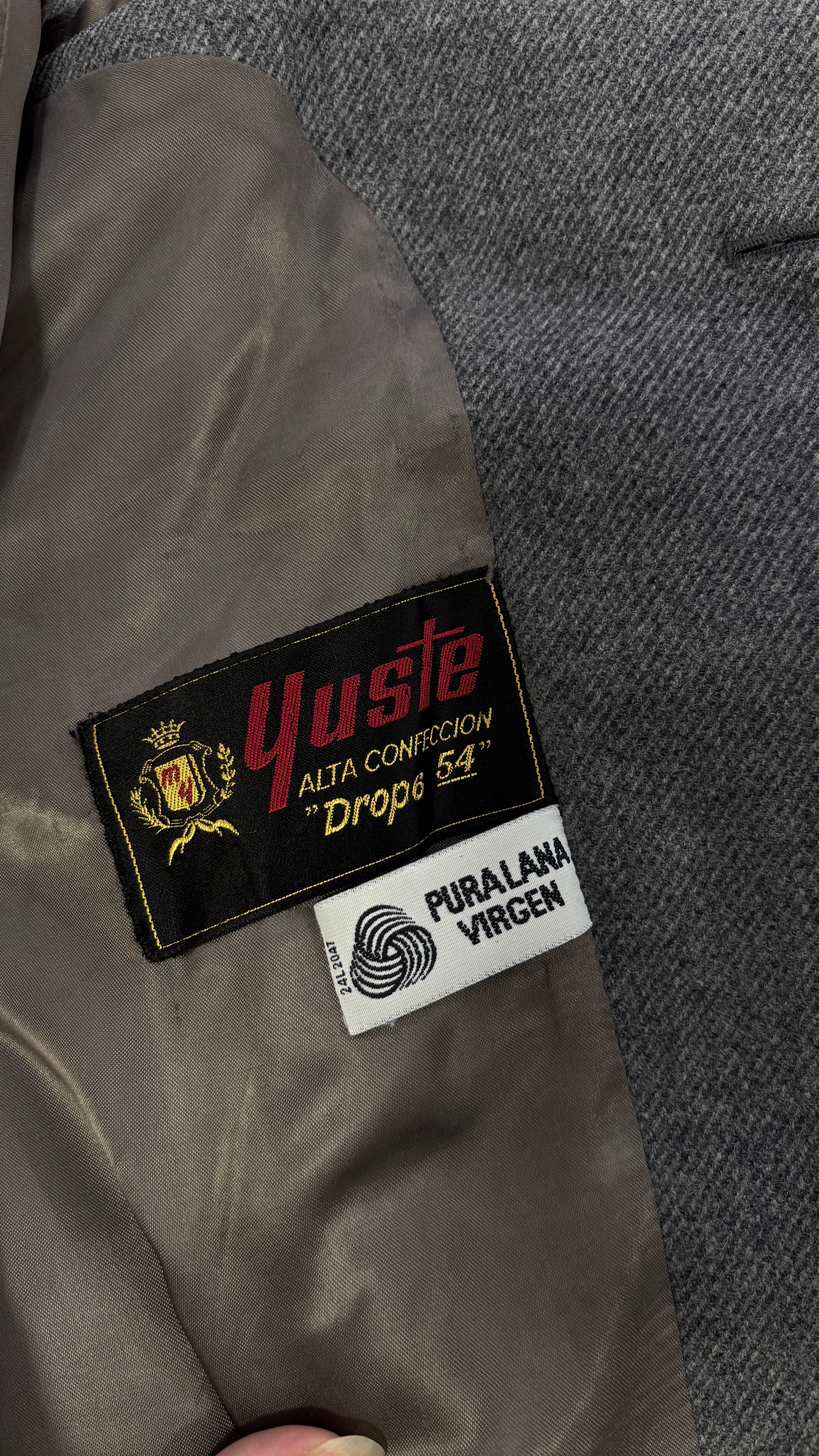 Vintage Spanish haute couture coat made of pure virgin wool, in gray. The fabric, finishes, and details are of excellent quality, with a firm yet comfortable structure that holds its shape beautifully. The oversized design features soft shoulders and slightly rounded sleeves, a very modern and elegant vintage touch.
