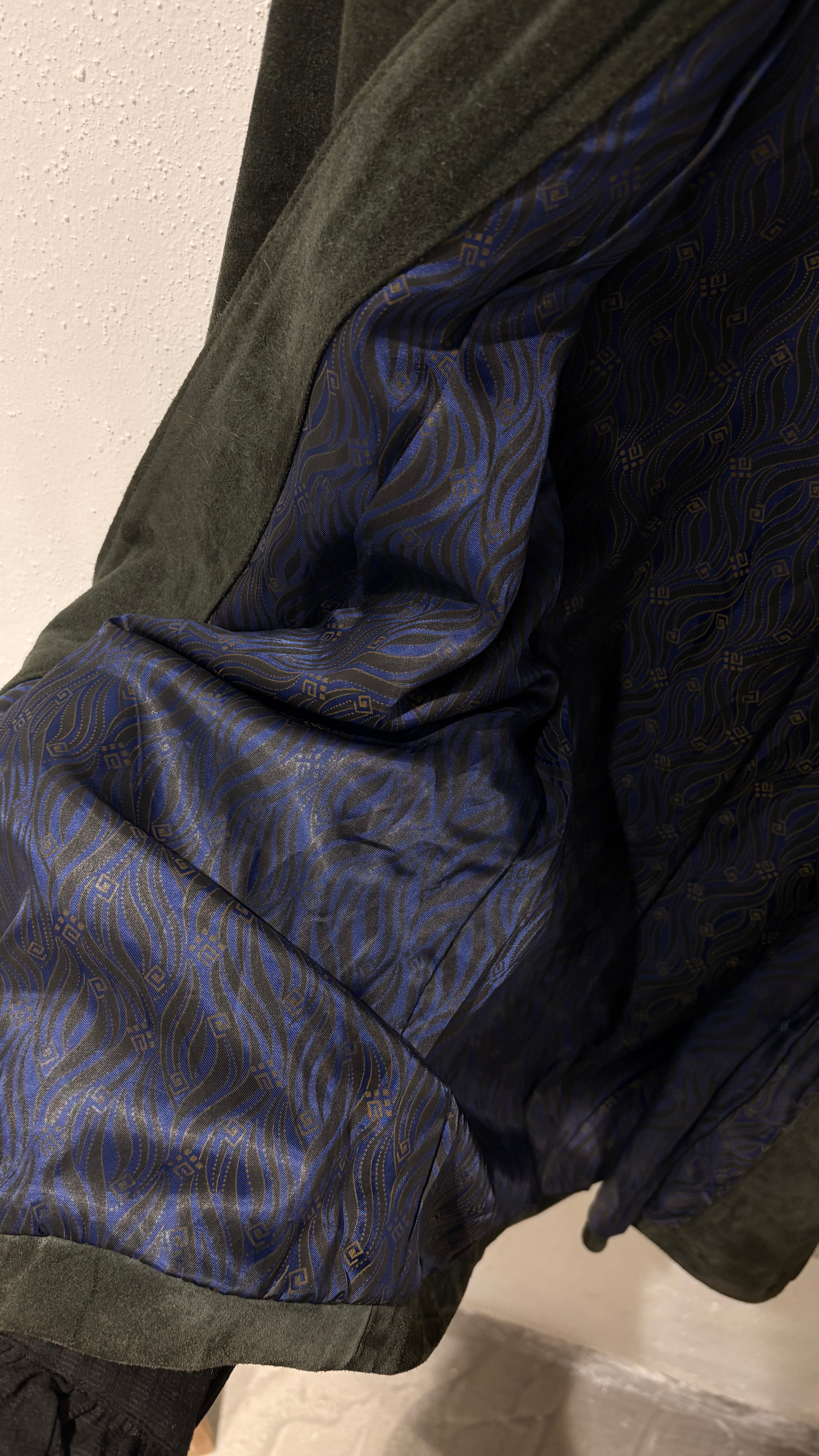 Vintage natural suede blazer in deep bottle green French style