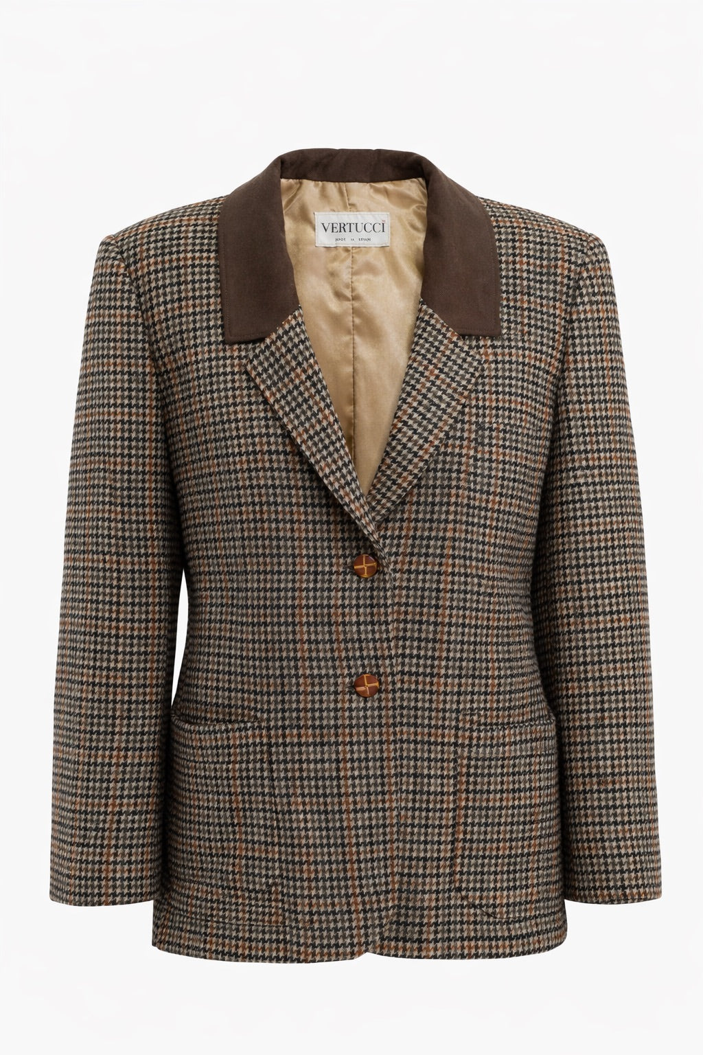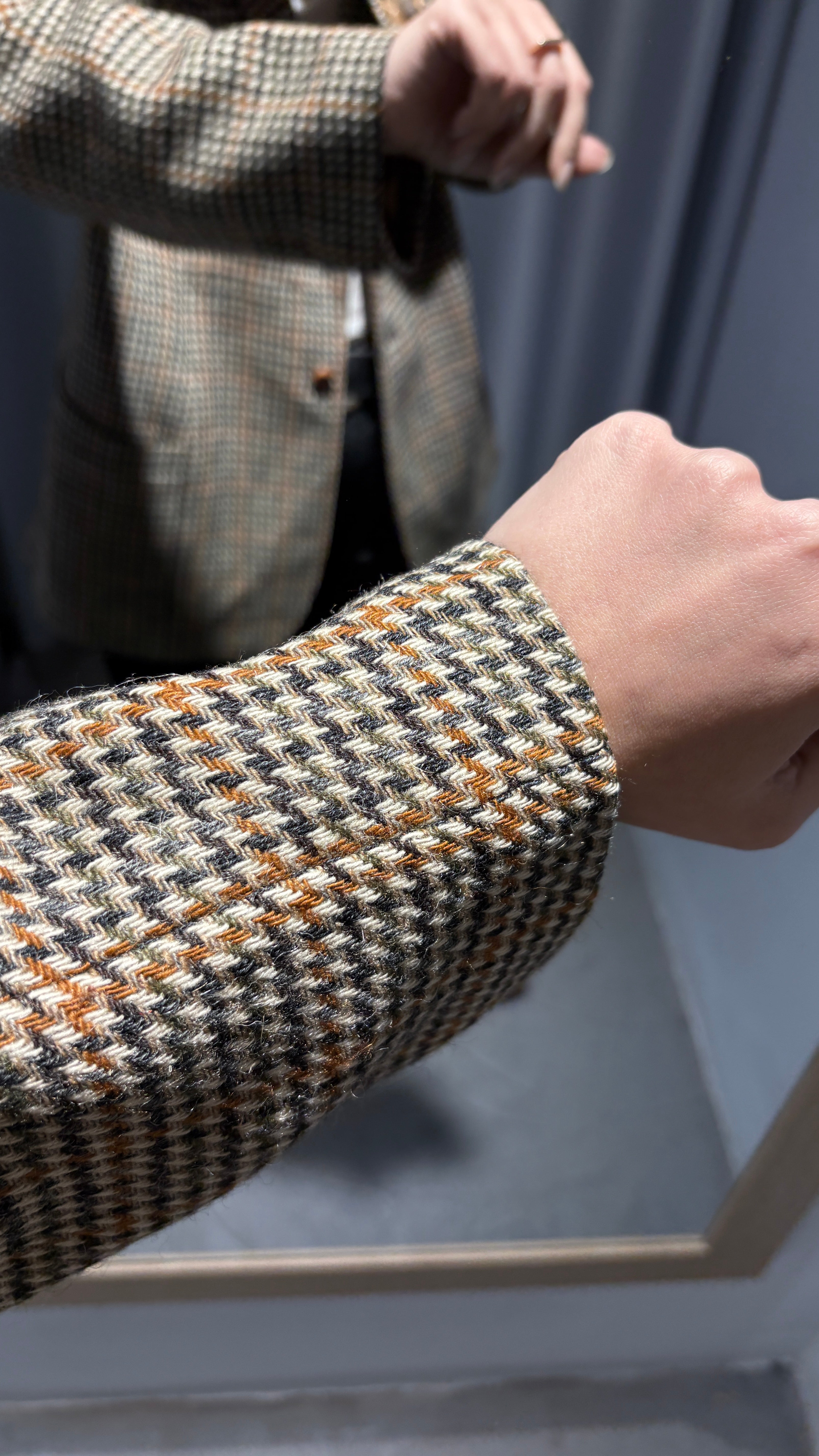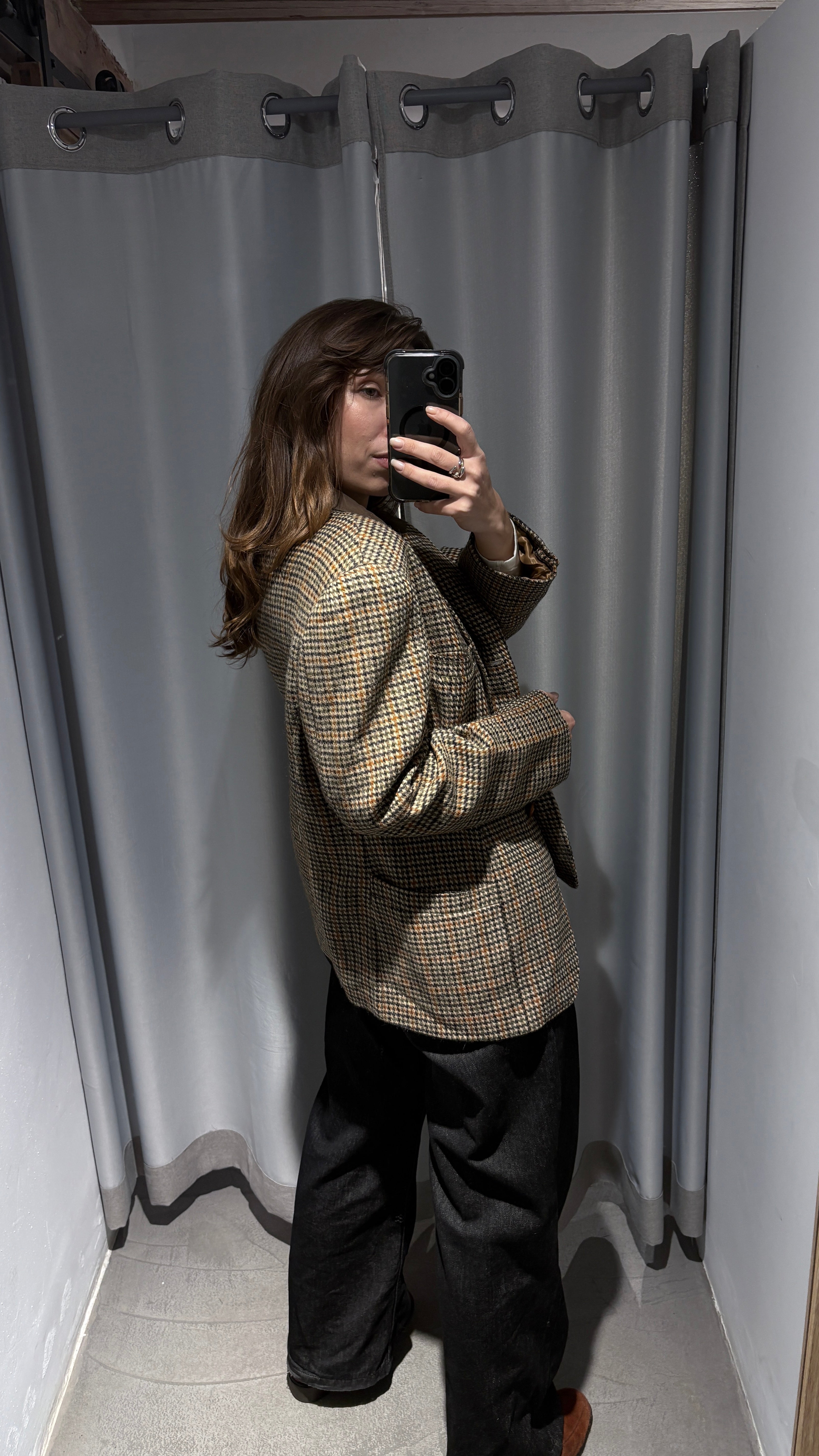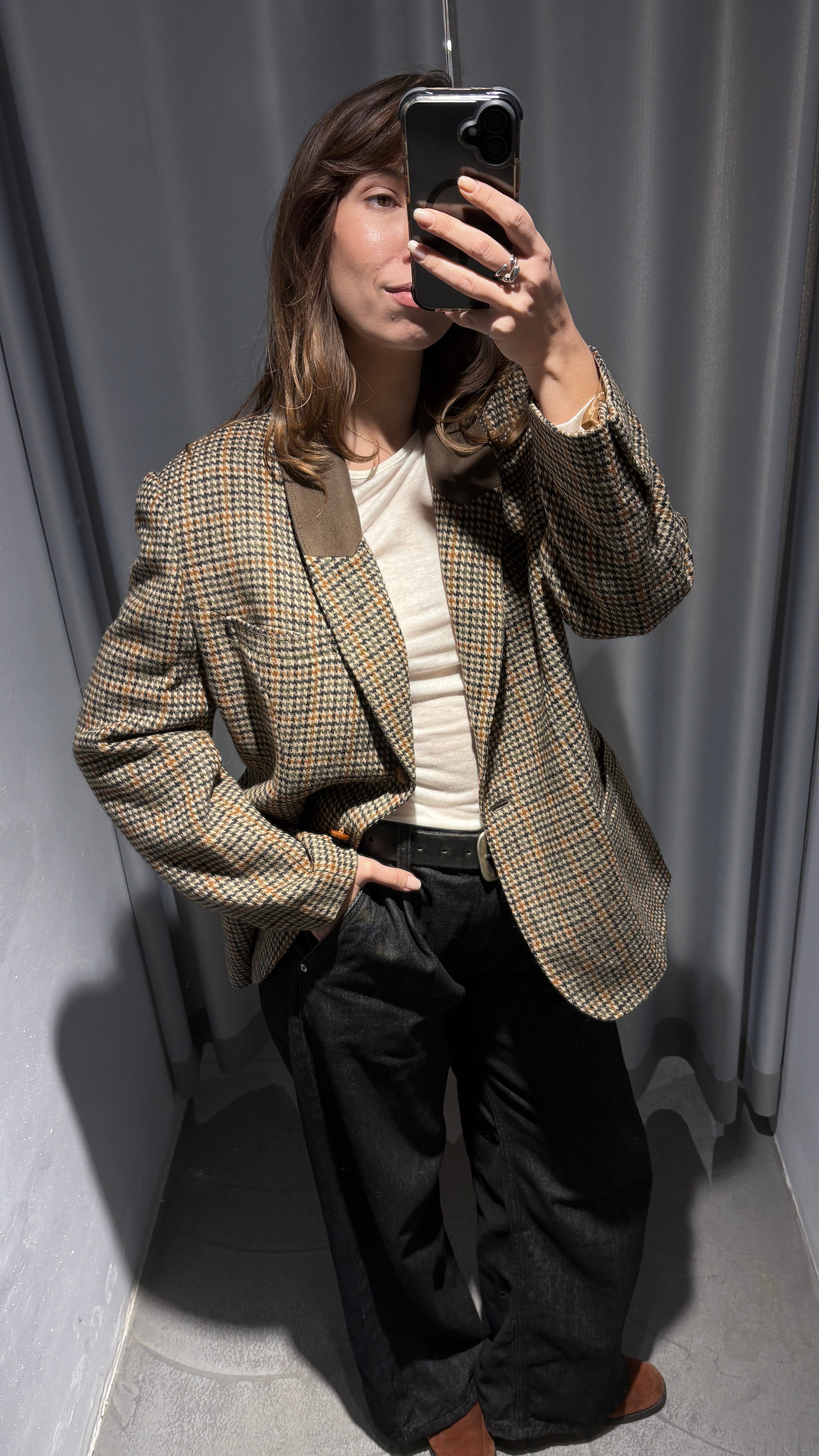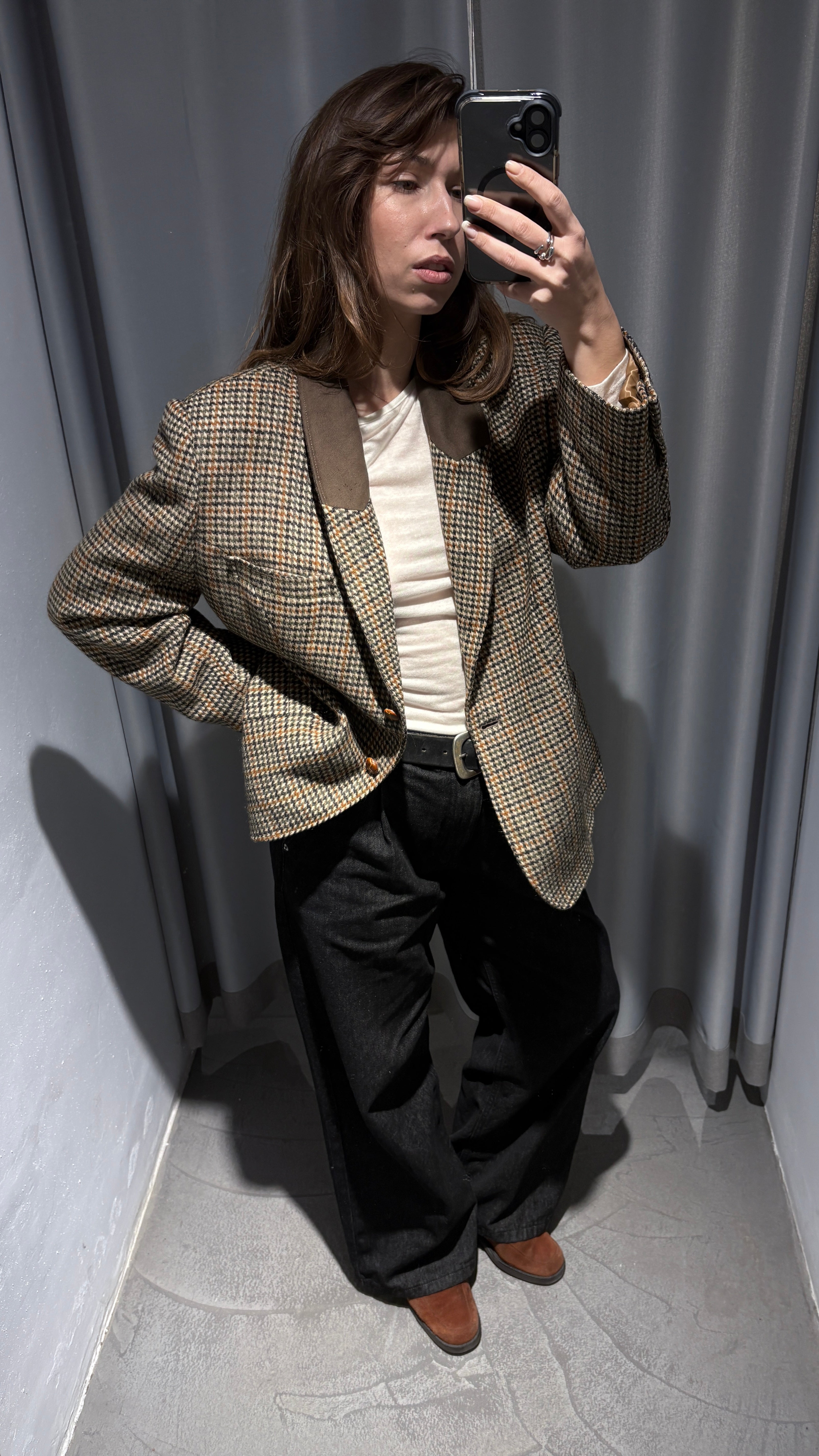 Vintage plaid blazer in neutral tones, super elegant yet with a relaxed vibe.